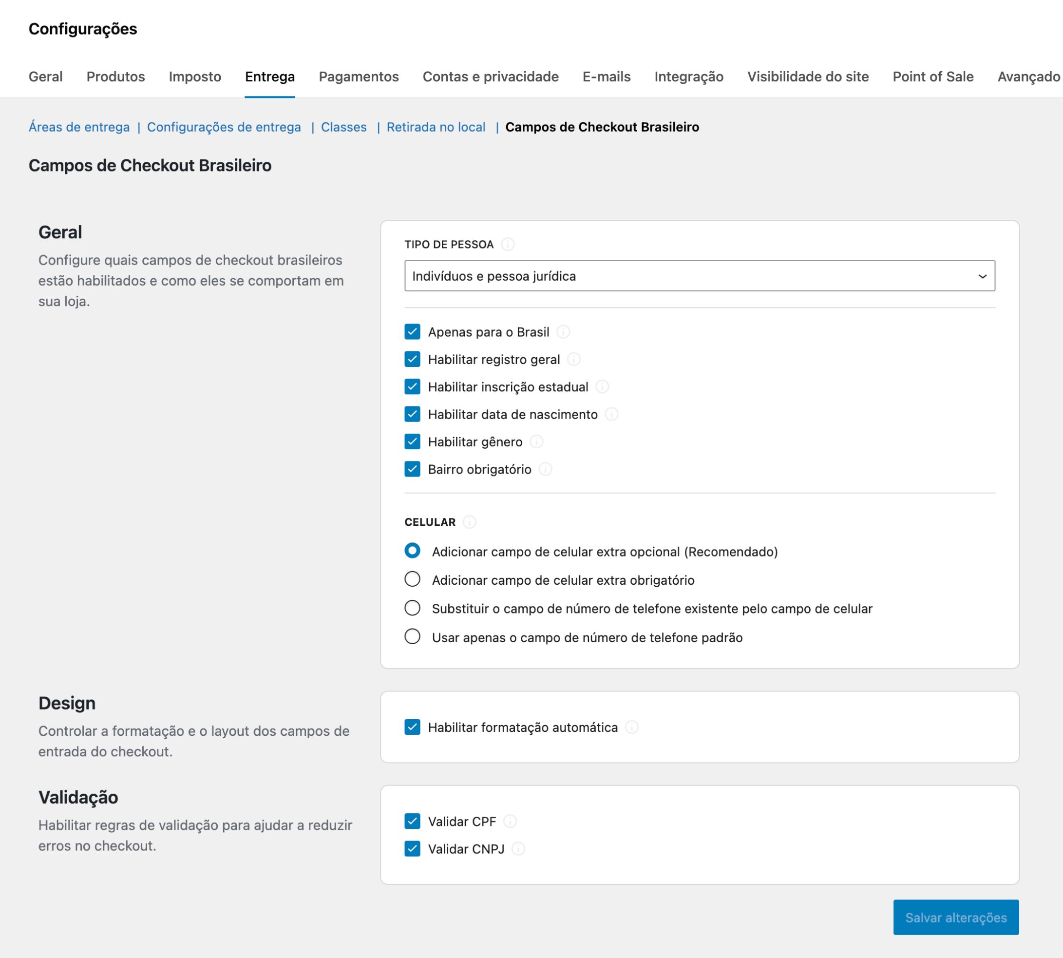 - Go to WooCommerce Settings Shipping Brazilian Checkout Fields and configure the fields.